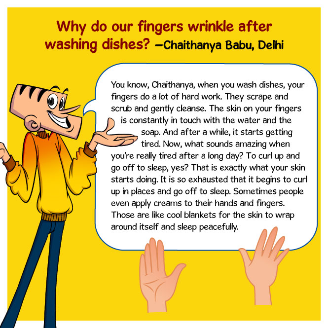Be it the reason behind insects' seasonal behaviour, wrinkly fingers, or the story of how oranges grow, Suppandi knows it all.