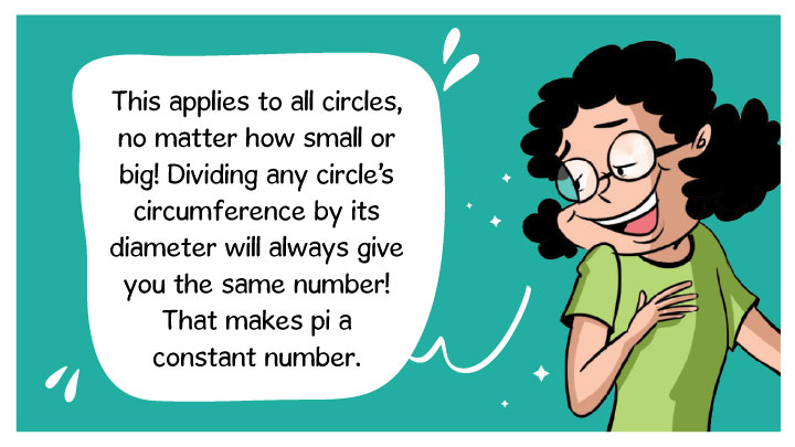 Pi falls in the ‘irrational’ circle. This means that after the decimal point, the digits never really end. They keep going infinitely! The value of pi up to 10 decimal places is 3.1415926535. Can you memorize this? Challenge your friends too!