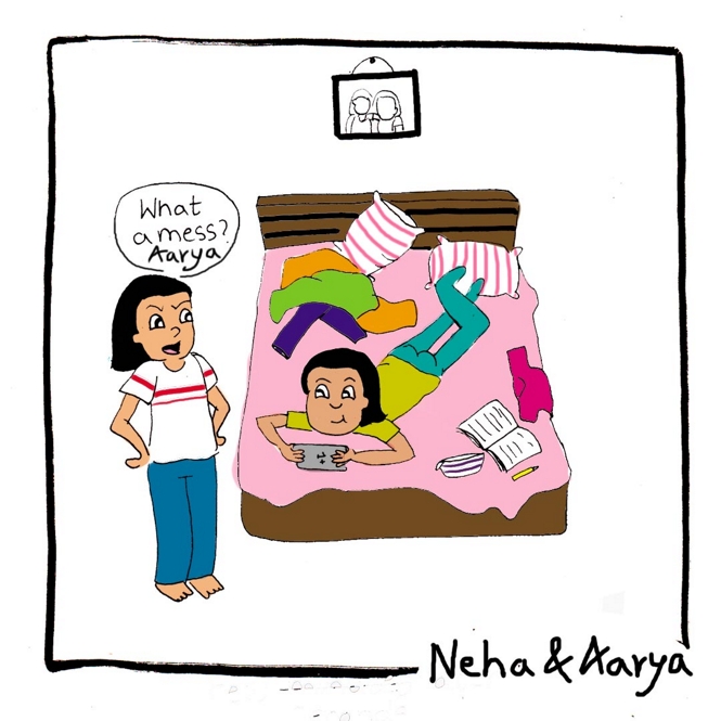 Tags: aarya, guest comic, mess, neha, neha & aarya, neha kale, sisters, webcomic