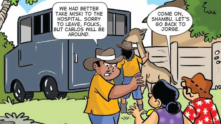 Sources say that Shambu and Shanti will be staying at the famous Cusco Alpaca Farm on his birthday. But mysterious incidents at the farm have resulted in a growing number of the gentle animals needing a visit to the veterinary hospital.