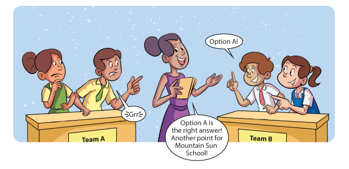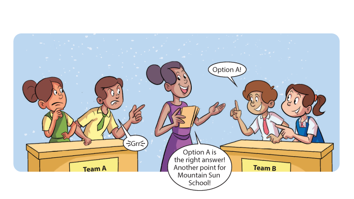 The quiz began and it proved to be tough! Mehek’s school got two questions wrong, but Mountain Sun was going strong. They got all the questions right! Detective Vohra watched with great interest as the intense rapid fire round began. The quizmaster shifted the quiz cards to her left hand as she asked Mountain Sun a question. The audience was amazed as the team shouted out, “Option B!” even before the options were read out. Detective Vohra stood up and said sternly, “This quiz is rigged!”