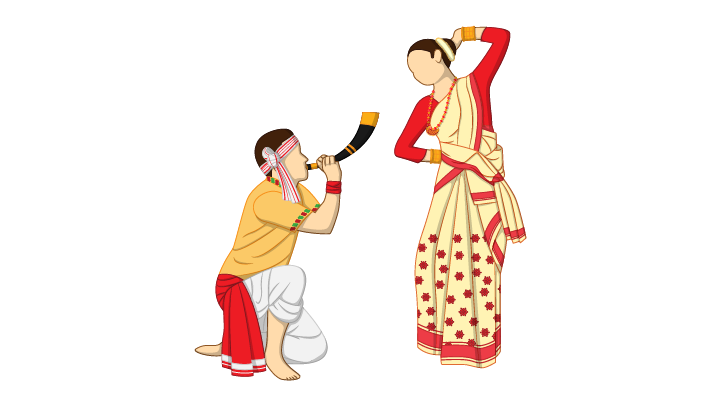 Bohag Bihu: Bohag Bihu is the Assamese new year, which is celebrated over the course of seven days. Bihu is celebrated thrice in a year as Bohag Bihu, Kati Bihu and Magh Bihu to mark different stages of the harvesting period. Dancing to folk songs known as Bihu Geet, feasting and exchanging gifts are part of the festive tradition. On the first day of Bohag Bihu dedicated to cattle, the animals are bathed, horns and hooves are coloured and adorned with garlands. On the second day, people apply turmeric paste to their bodies before bathing. Dishes like til laru (dessert made of sesame seeds), pitha (rice dumpling), murir laru (sweets made of puffed rice), poka mithoi (rice laddu) are prepared. Gamusa (towels) are given as gifts. The third and fourth day are dedicated to household deities and handlooms respectively. On the fifth day, farm equipment is celebrated. The sixth day is dedicated to pets. On the final day, people dance to the beats of musical instruments like dhol, gogona toka, etc.
