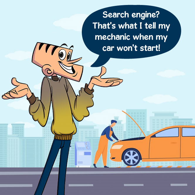 Unlike what Suppandi believes, a search engine is a computer program that searches for and identifies items in a database. Search engines are especially used to find information and sites on the internet. A search engine is made up of two parts: