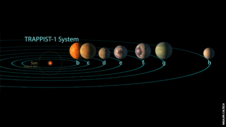 3. TRAPPIST-1 d, TRAPPIST-1 e and TRAPPIST-1 f are three planets in the habitable zone of the star TRAPPIST-1. This system has seven rocky planets, likely made of similar stuff as Earth but in different proportions. 40 light years away, this is the largest batch of Earth-sized habitable zone planets found so far.