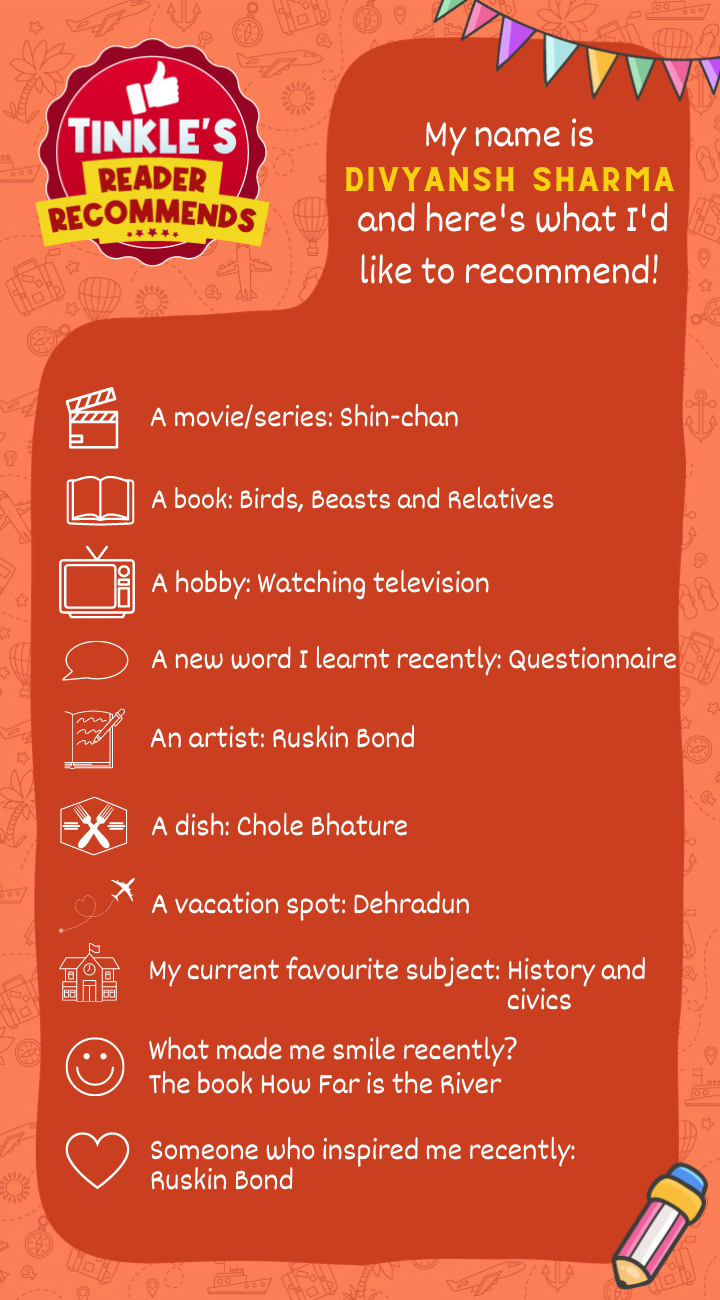 Tinkle reader Divyansh Sharma has some interesting recommendations for you! Find out his favourite book, movie, hobby and more!