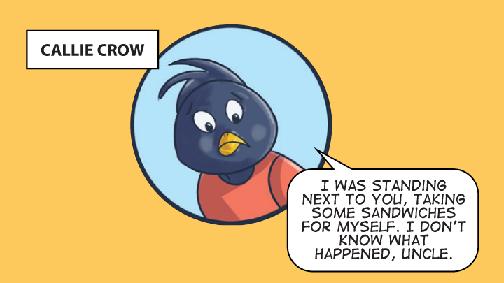 As Callie took some sandwiches for herself and sat down, she noticed that someone had moved her coin. She was back at the beginning! She started crying. Missy’s father asked the other kids if they knew anything.