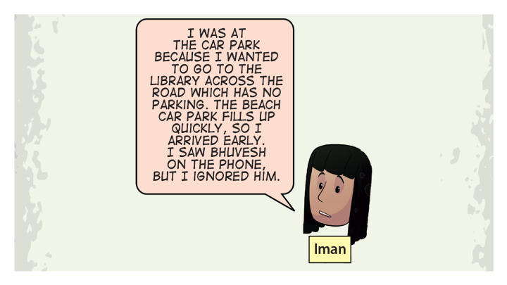 As soon as Inspector Flora arrived on the scene, Bhuvesh recounted everything that had happened that morning. After listening to his account, she rounded up the only other people who were at the beach at the time of the robbery.